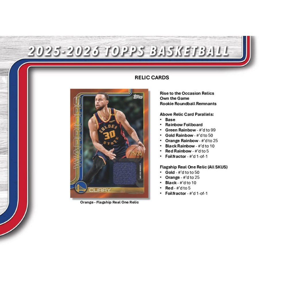 2025 Topps Flagship Basketball is BACK after years of anticipation — and it's bigger, bolder, and better than ever! Each Jumbo box contains 1 autograph and 1 relic card, 2 promo packs, 4 numbered parallel, 8 base parallels, 4 short insert cards and a TON more! Find Iconic Golden Mirror SSPs, Bold Home Court case hits and Rookie Photo shoot dual autographs. You don't want to miss the new Topps Basketball! Grab your teams and come join the fun!