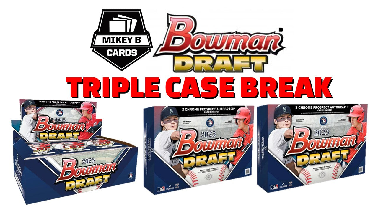 The next chapter of baseball history begins with 2025 Bowman Draft Baseball featuring the top newly drafted prospects from the 2025 MLB Draft! This Triple Case Break contains an amazing 20 Total Boxes!! Hobby boxes contain 3 autographs. multiple inserts and numbered cards and chase big time short printed inserts like: Crystallized, Retrofractor, Final Draft, Spotlights and more! Chase those big time 1st Bowman Autographs! Each Delight box contains 3 autographs per box, along with exclusive Delight parallels and numbered cards. TONS of hits in this one crew! 60 autos!! Don't miss your teams!